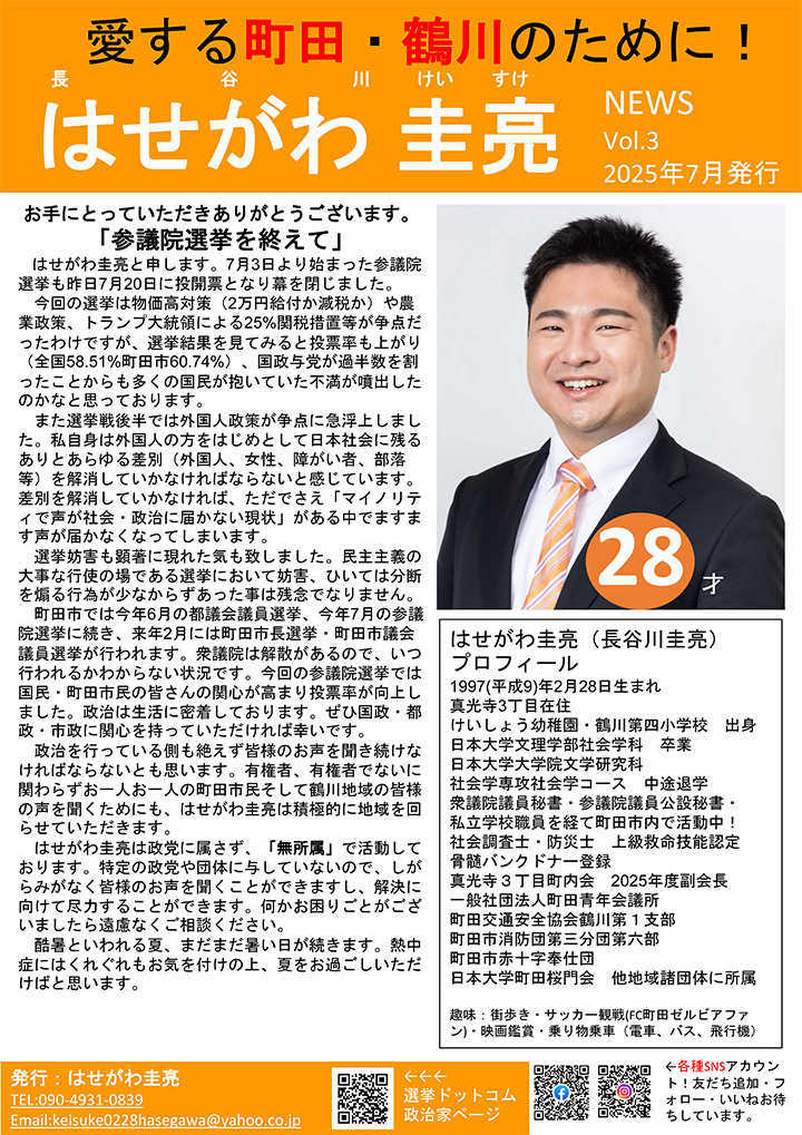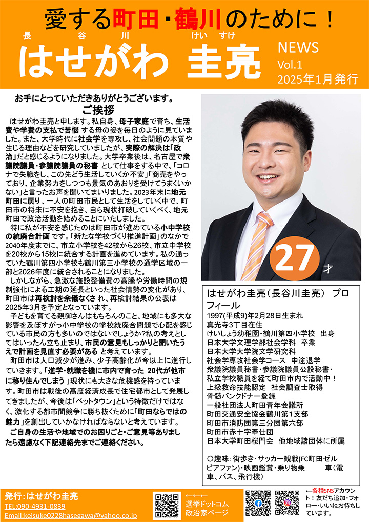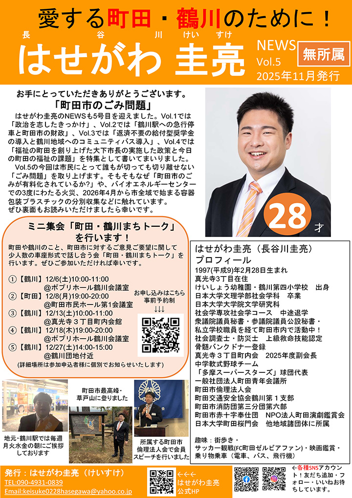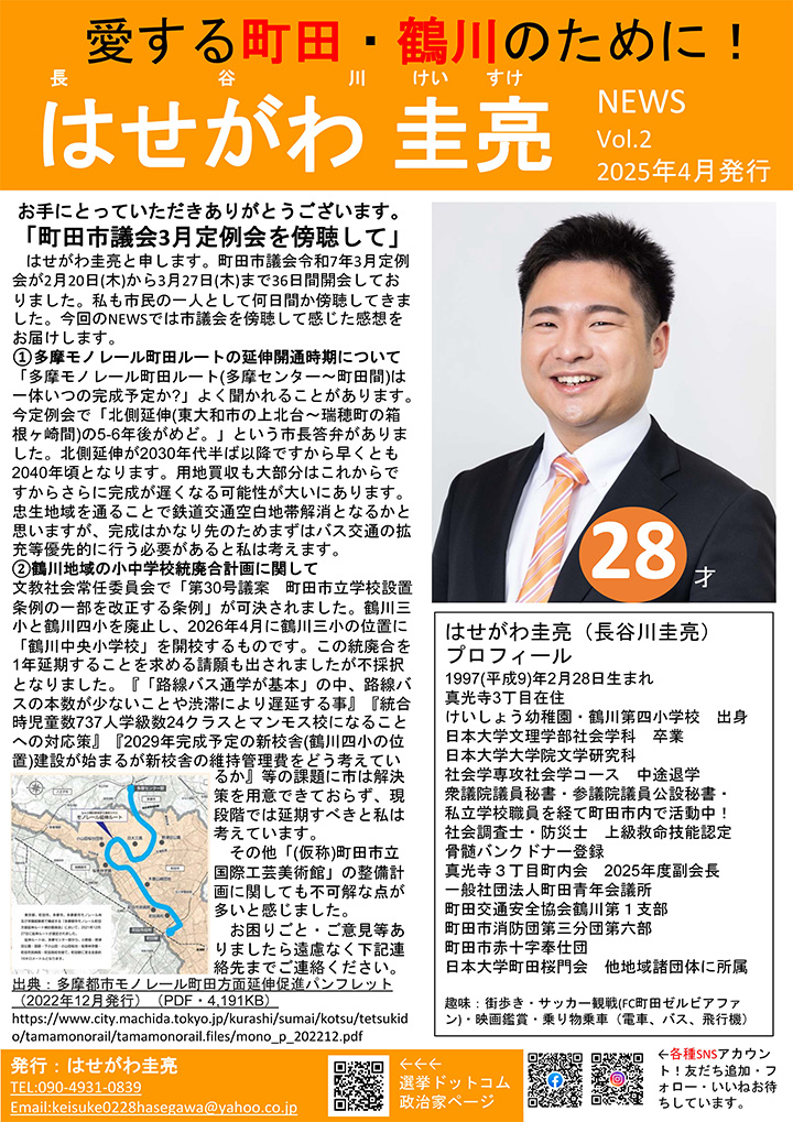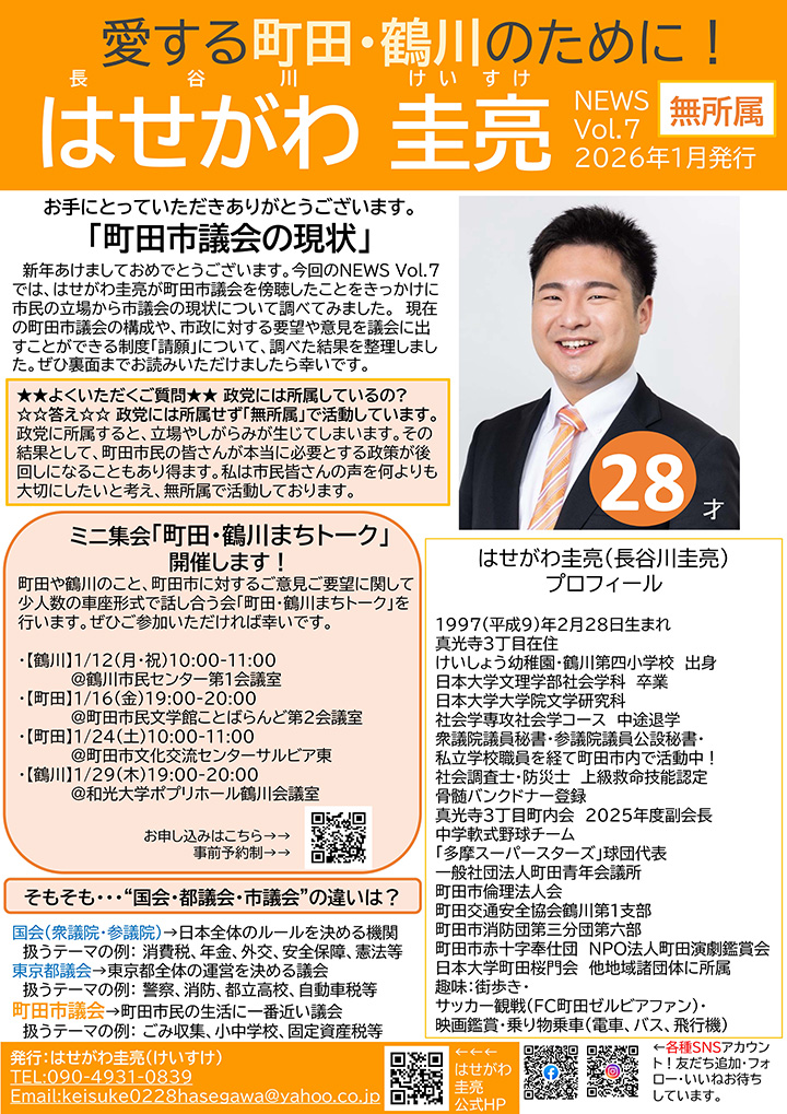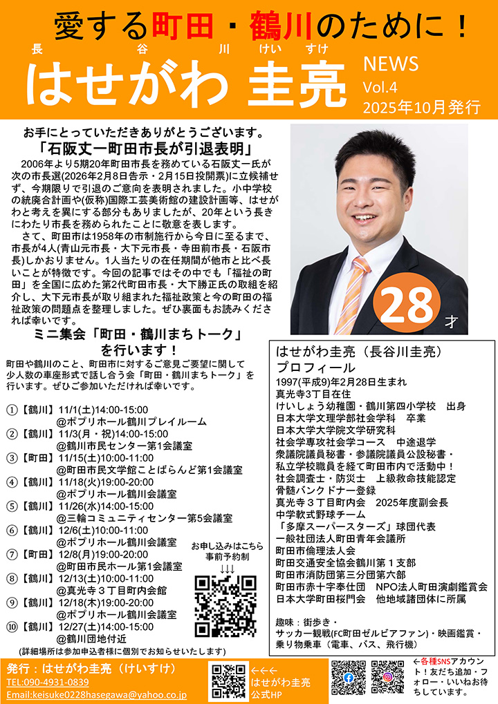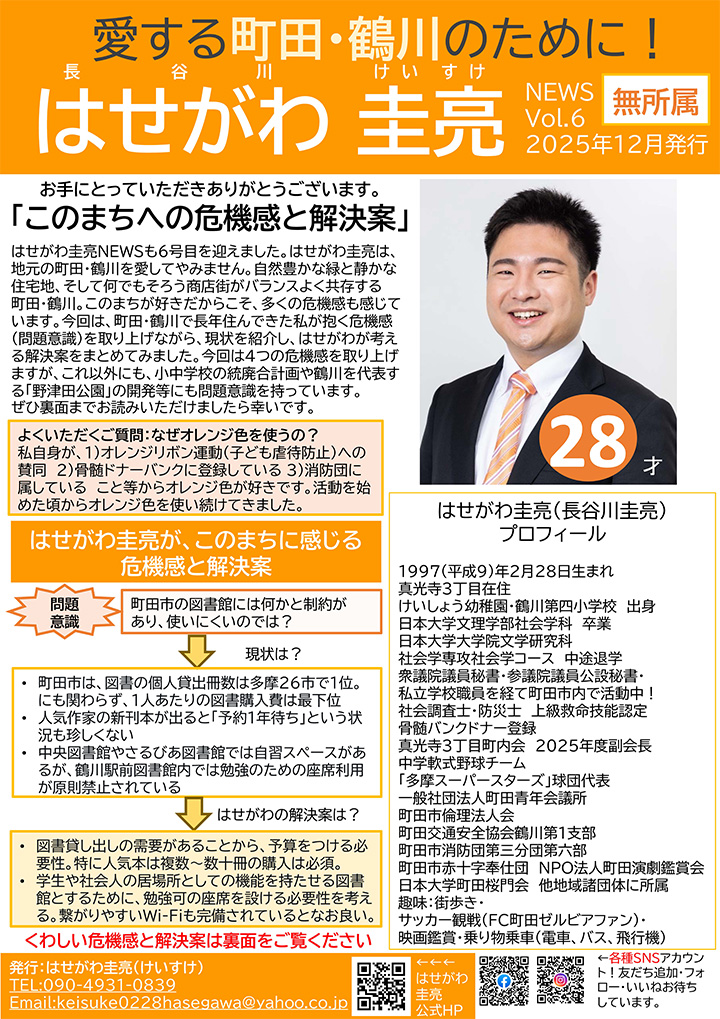 はせがわ圭亮は、町田市の未来をより良くするため、市民の皆さまと共に歩んでいきます。