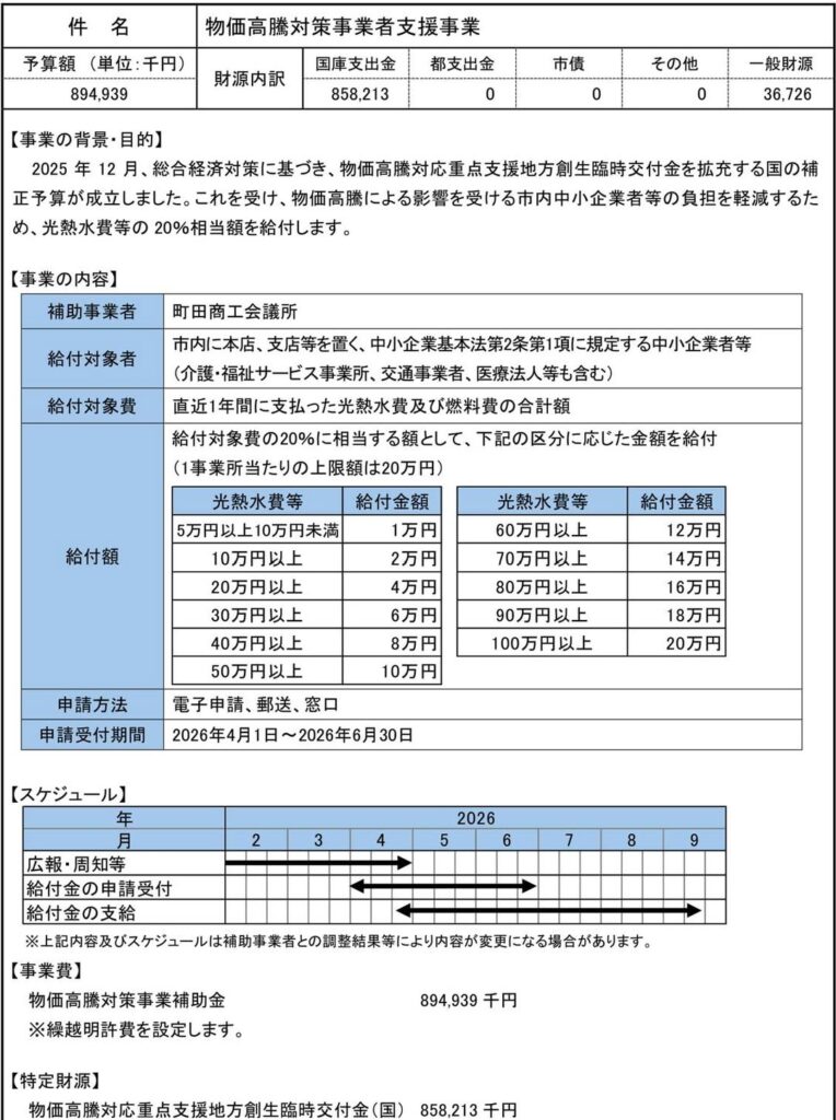 国の「物価高騰対応重点支援地方創生臨時交付金」に基づく、町田市民1人あたり4000円給付の詳細です。